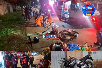 Grave colisão entre motocicletas deixa três pessoas feridas na zona Leste de Porto Velho