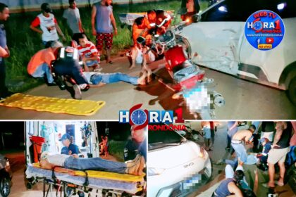 Casal fica gravemente ferido durante acidente de trânsito entre carro e moto em Porto Velho