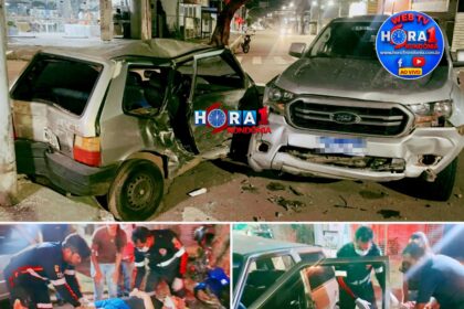 URGENTE: Violenta colisão entre caminhonete e carro deixa motorista lesionada em cruzamento na capital