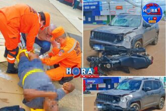 Forte batida entre carro e moto deixa jovem motociclista gravemente ferido em Porto Velho