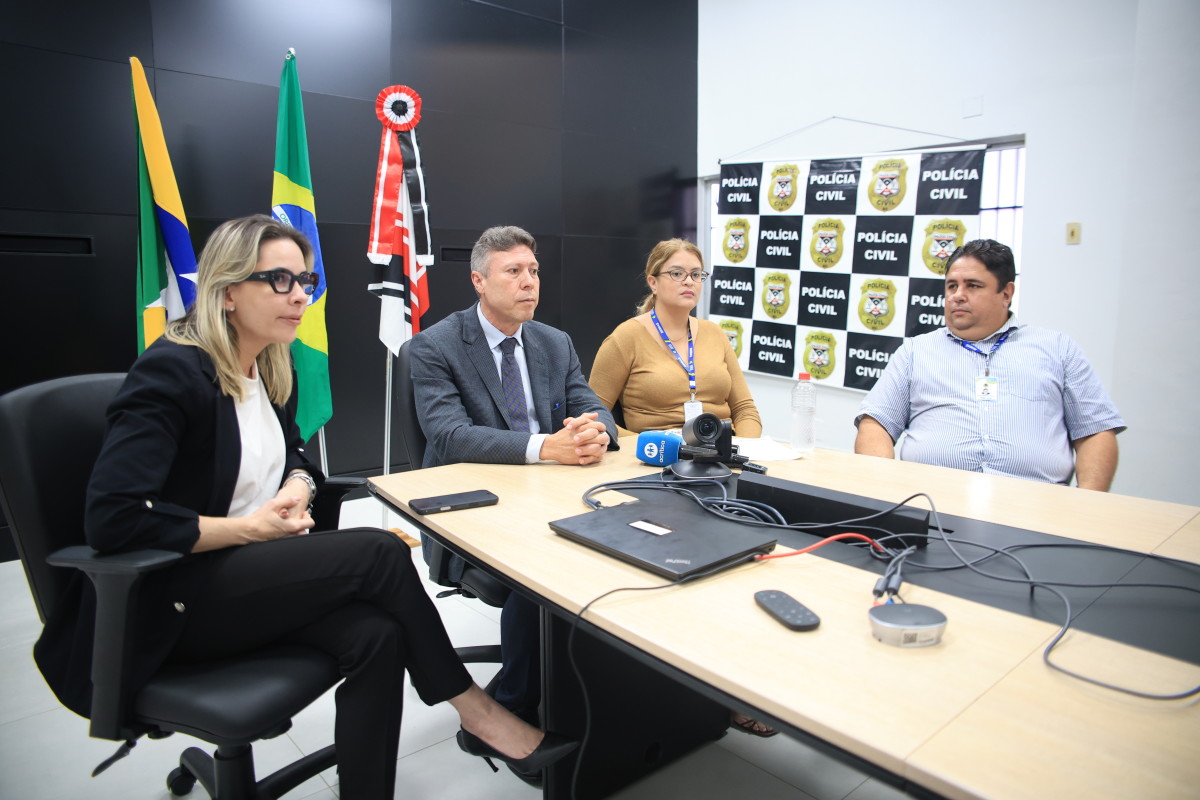 Participaram da coletiva a secretária adjunta de Inclusão e Assistência Social, Tércia Marília, o diretor-adjunto da Polícia Civil, Claudionor Muniz, e a representante da Delegacia Especializada em Repressão às Fraudes (Defraude), delegada Ádrian Viero da Costa.