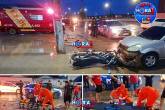 Colisão entre carro e moto deixa casal gravemente ferido na zona leste