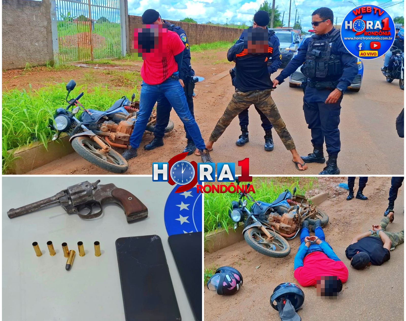 A Polícia Militar foi acionada logo após o ataque e iniciou um acompanhamento tático pela região. Durante a ação, os suspeitos acabaram sendo surpreendidos e detidos pela guarnição. Com eles, os policiais encontraram um revólver contendo cinco munições deflagradas, compatíveis com os disparos realizados contra a empresa.