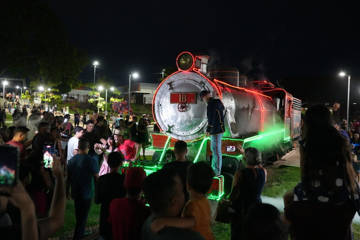 A lendária Locomotiva 18, uma das peças mais emblemáticas do acervo da Estrada de Ferro Madeira-Mamoré, ganhou novos contornos de encanto neste fim de semana ao ser iluminada com decoração natalina. A ação, promovida pela Prefeitura de Porto Velho, reuniu famílias inteiras que lotaram o complexo para prestigiar o desfile da máquina centenária totalmente ornamentada.