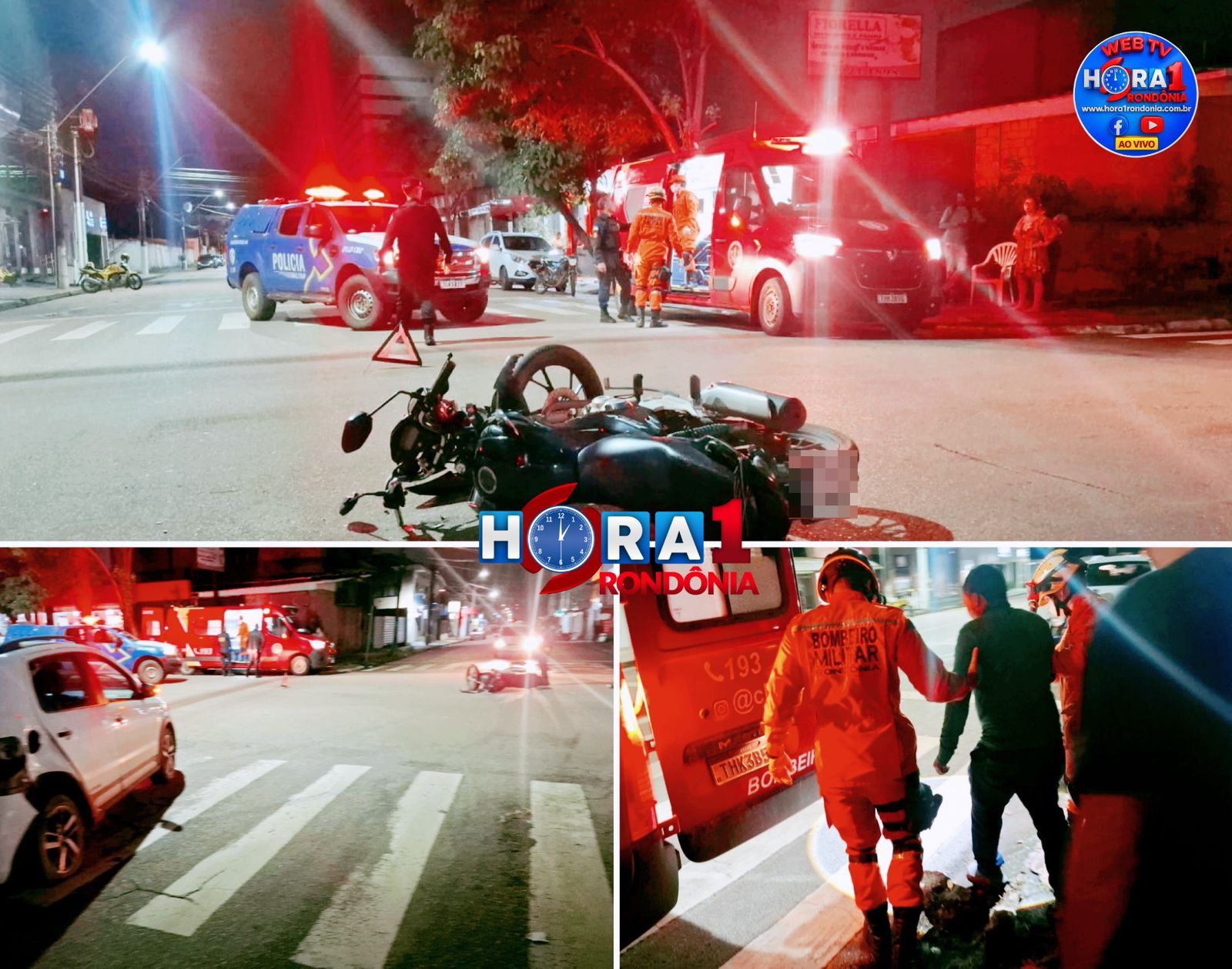 Um motociclista ficou ferido na noite desta quinta-feira (05) após se envolver em um acidente de trânsito entre uma motocicleta e um veículo de passeio, no cruzamento das avenidas Pinheiro Machado e Campos Sales, em Porto Velho.