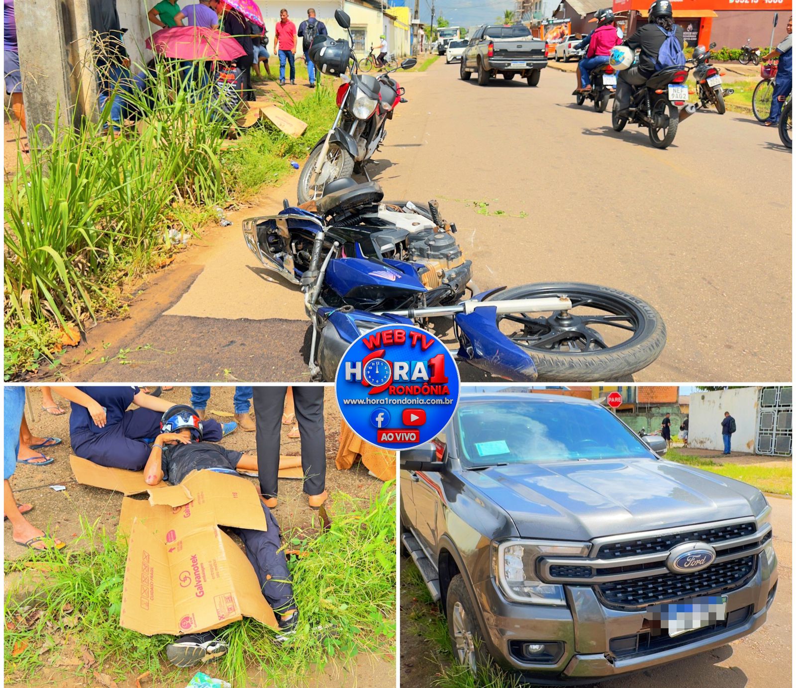 A Polícia Militar, por meio do Batalhão de Trânsito, registrou na tarde desta segunda-feira um grave acidente envolvendo uma motocicleta e uma caminhonete no cruzamento da Rua Angico com Rua Nova Esperança, no bairro Caladinho, Zona Sul de Porto Velho.