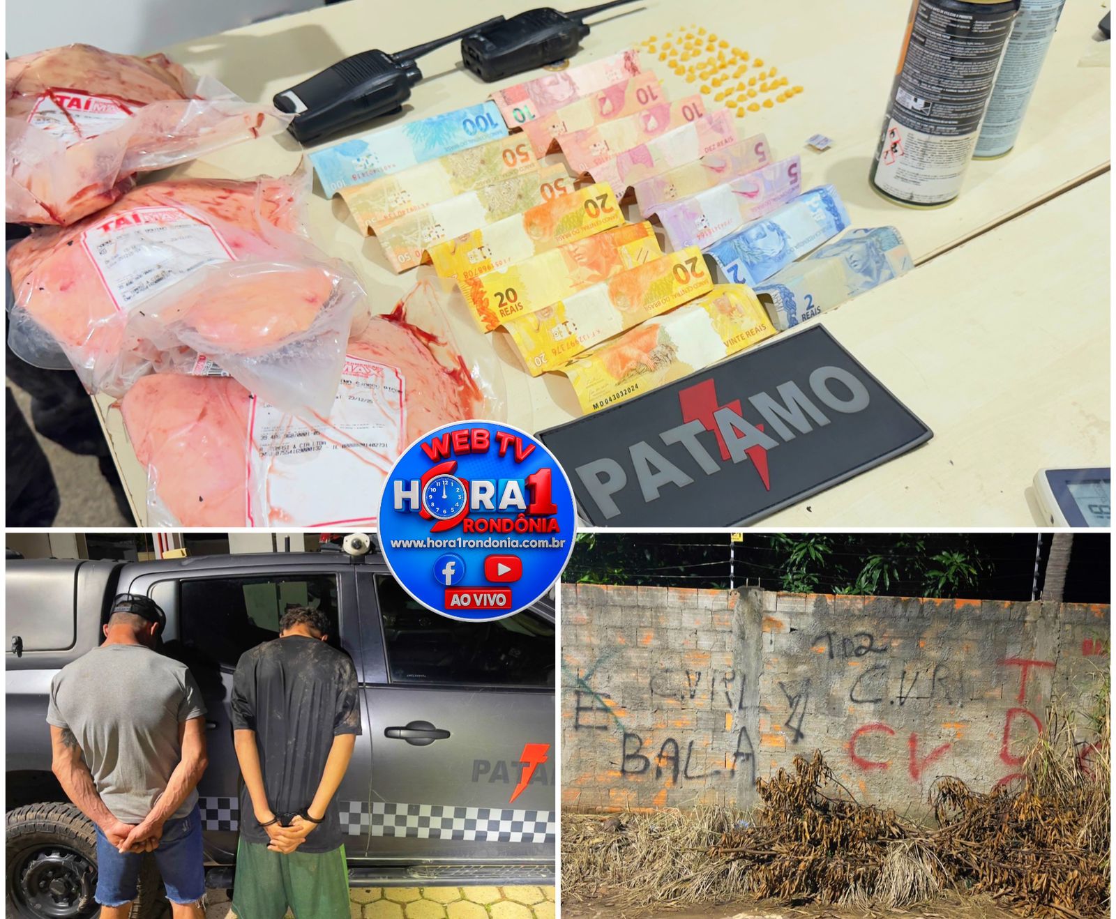 Ainda conforme a polícia, no local havia spray de tinta utilizado para pichar a sigla “CV” nos arredores, prática empregada para demarcar território e intimidar moradores da área. No momento da ação, um usuário também foi flagrado realizando uma troca: três peças de picanha, furtadas de um mercado da cidade, seriam trocadas por pedras de crack.