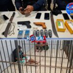Ao verificar a situação, o comerciante conseguiu observar três indivíduos deixando o local às pressas. Dois fugiram em uma motocicleta, enquanto o terceiro correu a pé transportando sacolas onde estavam as armas furtadas. Logo após o acionamento, equipes da Polícia Militar, com apoio das guarnições 1º Alfa e da operação Comércio Seguro, iniciaram diligências para localizar os suspeitos, traçando possíveis rotas utilizadas na fuga.