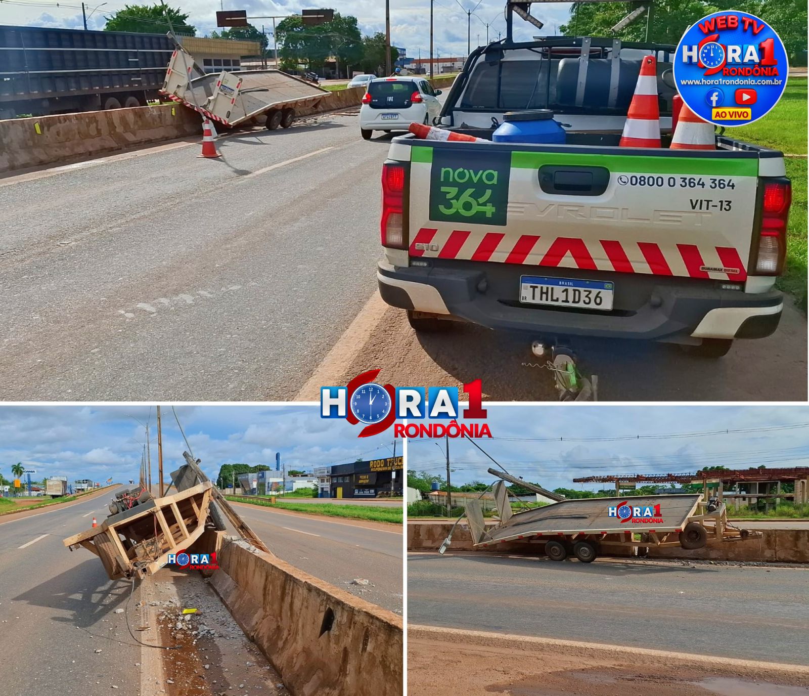 No final da tarde deste domingo (15), a Polícia Rodoviária Federal foi acionada para atender a um acidente de trânsito registrado no perímetro urbano de Porto Velho, envolvendo o reboque de uma caminhonete pertencente à concessionária responsável pela BR-364.