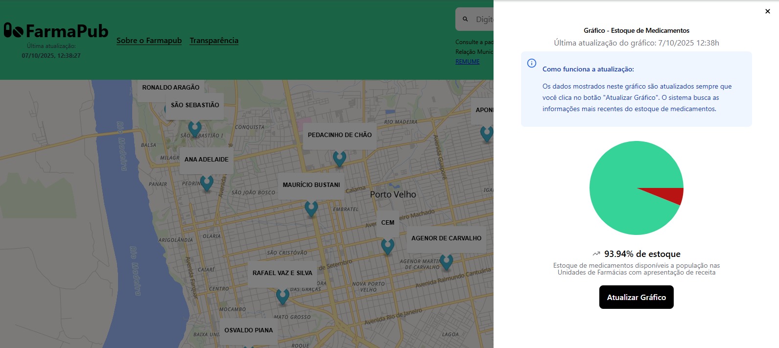 Para facilitar ainda mais o acesso e a logística de quem precisa dos remédios, o município disponibiliza a ferramenta Farmapub. A plataforma permite que cidadãos, profissionais prescritores e usuários do SUS consultem, de forma simples e transparente, a disponibilidade de medicamentos da Atenção Primária à Saúde nas unidades do município, evitando deslocamentos desnecessários e garantindo mais agilidade no atendimento.