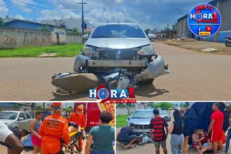 Forte batida entre carro e moto deixa jovem motociclista gravemente ferido em Porto Velho