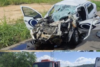 Grave colisão na BR deixa um morto, motorista preso às ferragens e três feridos