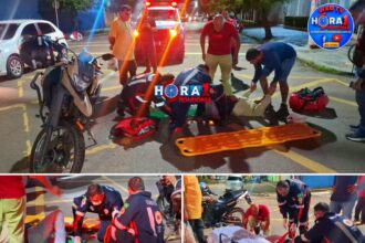 URGENTE: Motoboy fraturada na perna após colisão entre motocicletas no Centro; suspeito fugiu sem prestar socorro