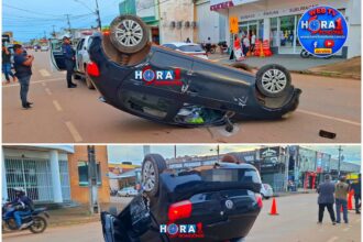 URGENTE: Motorista de App perde controle do carro e capota após tentativa de evitar colisão em Porto Velho