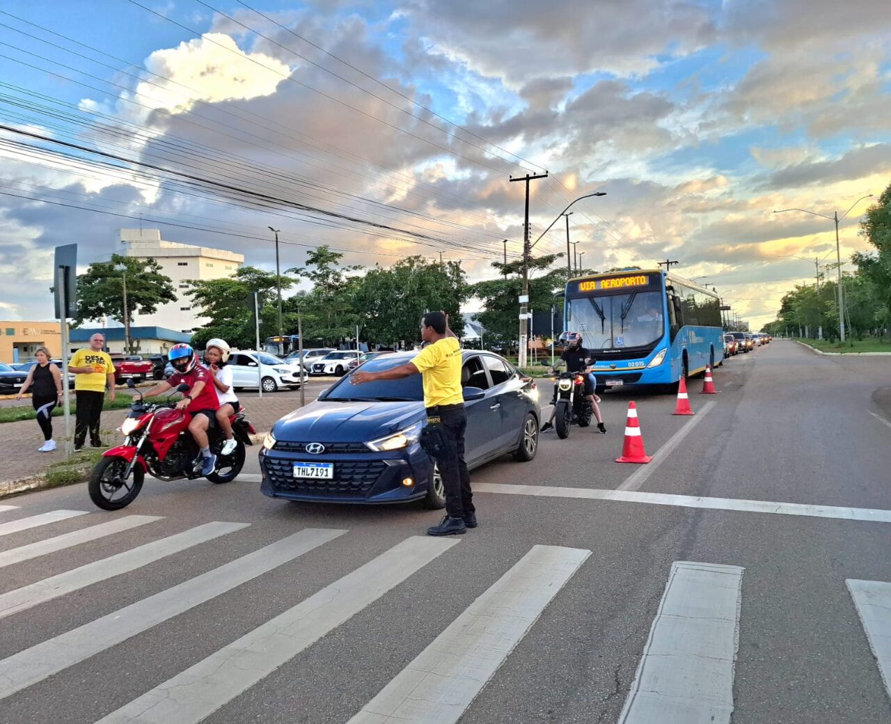 Durante o Pit Stop, equipes do Detran-RO abordaram condutores e pedestres para reforçar práticas essenciais de segurança no trânsito, como o respeito aos limites de velocidade, o uso do cinto de segurança, do capacete e dos sistemas de retenção infantil. Também foram distribuídos folders educativos e bafômetros descartáveis, além de orientações específicas sobre a travessia segura na faixa de pedestres, tema destacado ao longo de toda a ação.