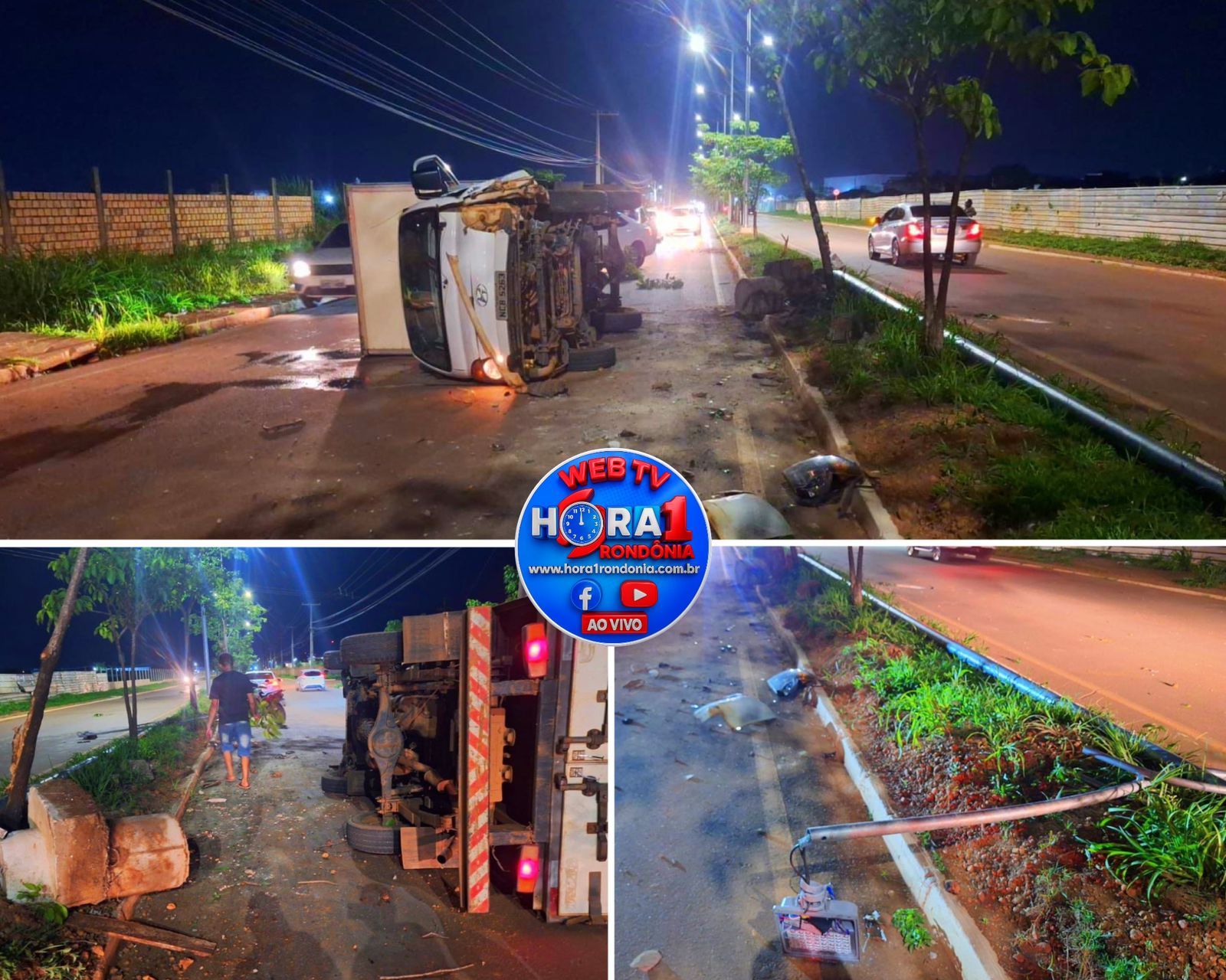 De acordo com informações apuradas pela Polícia Militar de Trânsito (BPtran), o motorista do caminhão seguia pela via em direção à BR-364, quando teria sido fechado por outro veículo que transitava ao lado. Ao tentar evitar a colisão, o condutor acabou perdendo o controle da direção, subiu no canteiro central e colidiu violentamente contra um poste de energia, provocando o capotamento do automóvel.