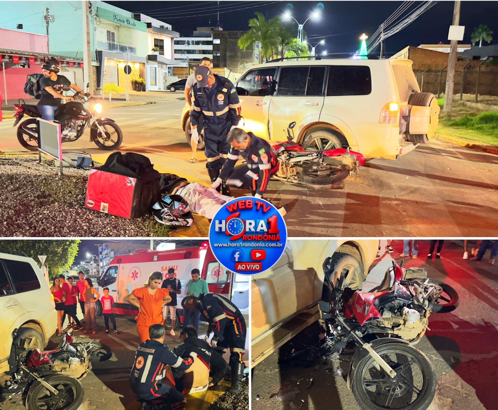 Um grave acidente de trânsito envolvendo um carro e uma motocicleta foi registrado na noite desta segunda-feira (22), na rotatória da Avenida 6 de Maio com a Rua Dom Augusto, na região central do município de Ji-Paraná (RO).