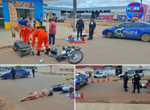 Forte batida entre carro e moto deixa jovem motociclista gravemente ferido em Porto Velho