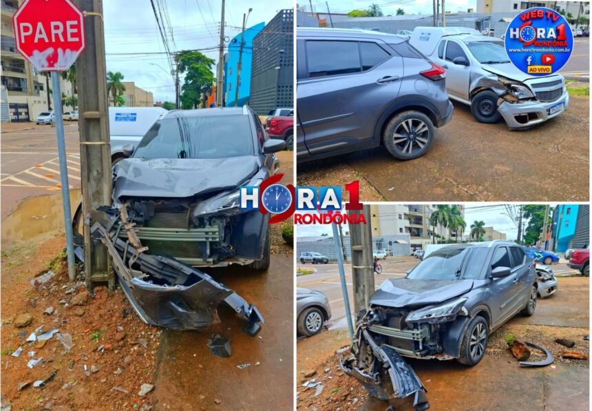Com a força do impacto, o Nissan Kicks perdeu o controle da direção e acabou colidindo contra um poste de iluminação pública localizado na via. Apesar da violência da batida, os ocupantes dos dois veículos sofreram apenas escoriações leves.