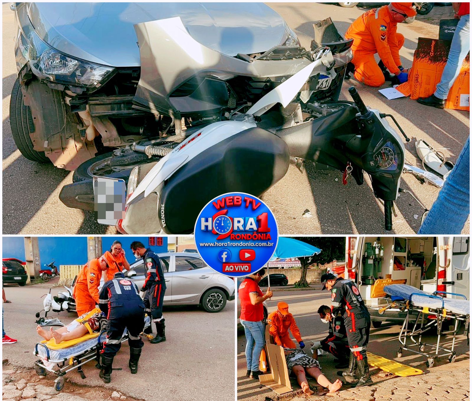 URGENTE: Motociclista fica gravemente ferida após colisão frontal com carro de aplicativo na região Central de Porto Velho