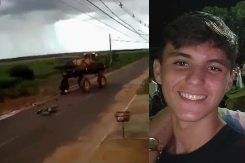 Ele conduzia uma bicicleta elétrica quando entrou na frente de um pulverizador agrícola que seguia em sentido contrário. Nas imagens, é possível ver o momento em que o adolescente tenta passar por baixo do pulverizador, que tenta desviar dele, e acaba sendo atingido. O menino que estava na garupa conseguiu se jogar da bicicleta e não sofreu ferimentos graves, enquanto a vítima morreu no local.