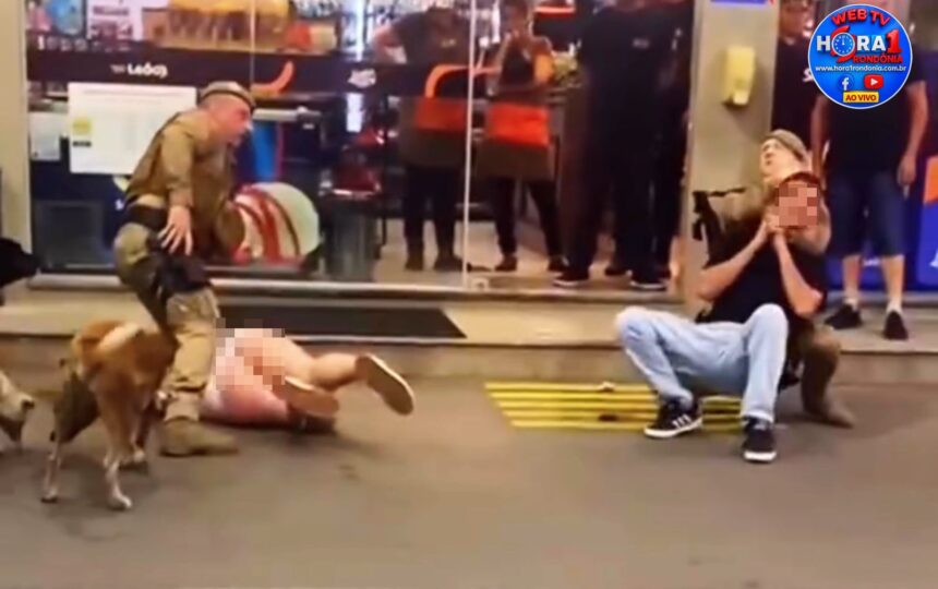 Dois policiais militares foram flagrados em vídeo agredindo um homem e uma mulher durante uma abordagem realizada no último sábado (7), no pátio de um posto de combustíveis no município de Braço do Norte, no interior de Santa Catarina. As imagens, que circularam nas redes sociais, mostram o momento em que um dos abordados, mesmo rendido e obedecendo às ordens, é imobilizado com um golpe conhecido como “mata-leão”, enquanto uma jovem que filmava a ação é derrubada com violência ao chão.